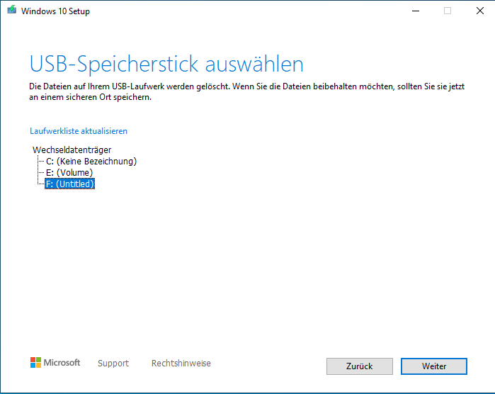 Hier ist wichtig, dass der USB-Stick an der richtigen Stelle ist